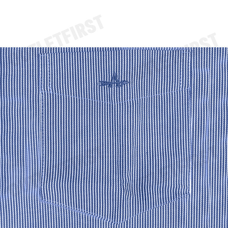 - เสื้อแต่งแนวเส้นตรงสีน้ำเงินสลับสีขาว ตามดีไซน์แบรนด์
