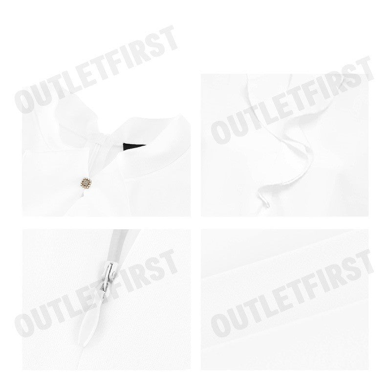 รุ่น: WOMEN'S SATIN STAND COLLAR RUFFLED LONG SLEEVES BLOUSE