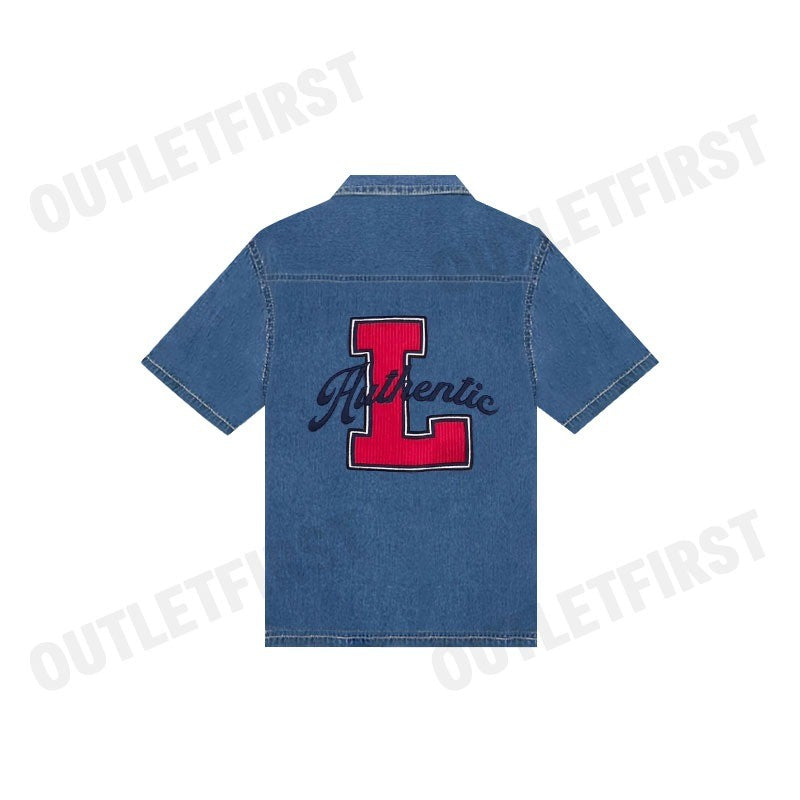 - เสื้อเชิ้ตยีนส์แขนสั้น สียีนส์กลาง สำหรับผู้ชาย